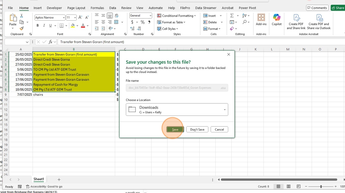 9. Make any edits and exit and agree to save by pressing Click “Save”